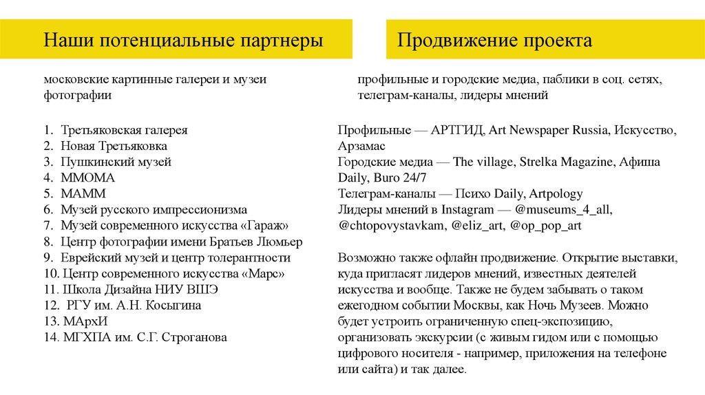 Наши потенциальные партнерымосковские картинные галереи и музеи