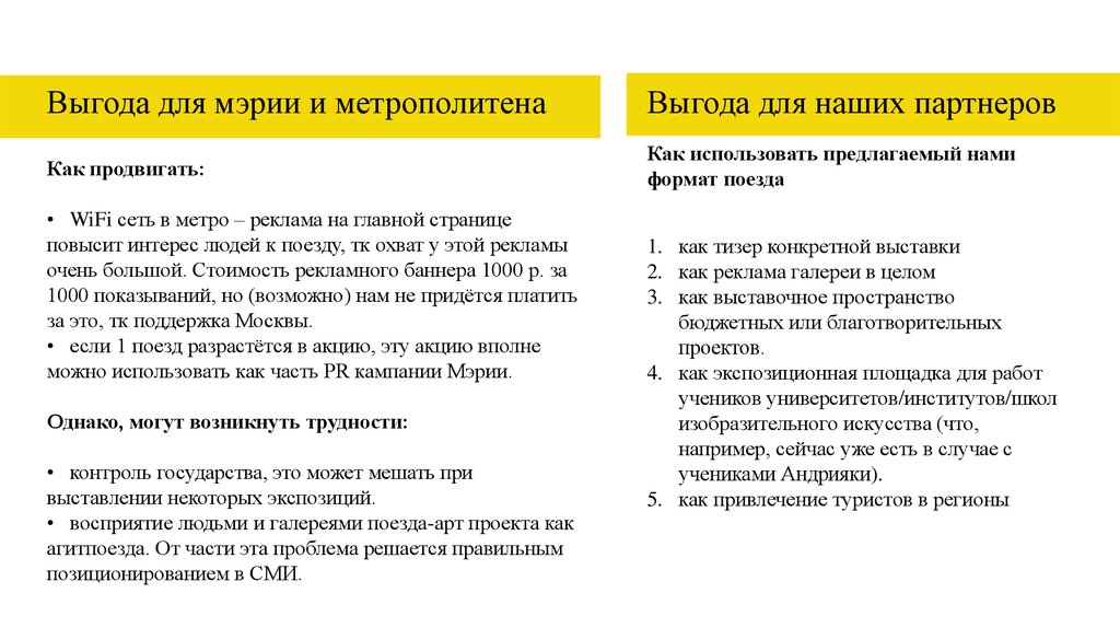 Выгода для мэрии и метрополитенаВыгода для наших партнеров