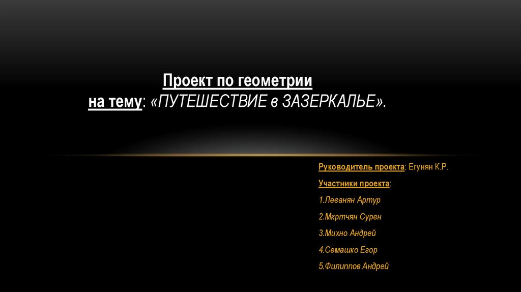Проект по геометриина тему: «ПУТЕШЕСТВИЕ в ЗАЗЕРКАЛЬЕ».