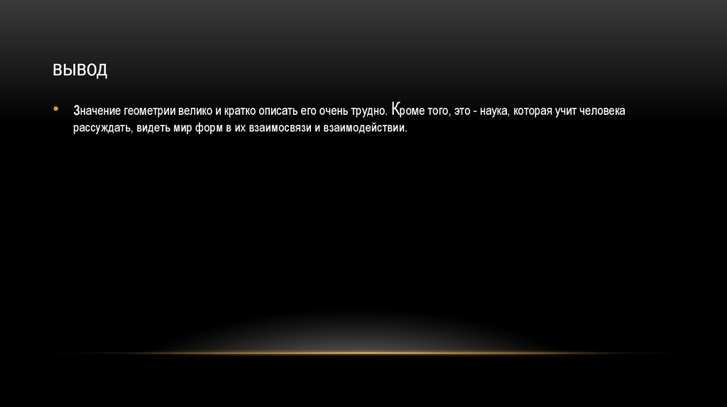 вывод• значение геометрии велико и кратко описать его очень трудно. Кроме того, это - наука, которая учит человека