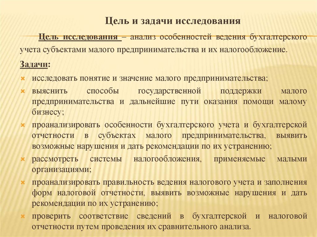 Цель и задачи исследованияЦель исследования – анализ особенностей ведения бухгалтерского