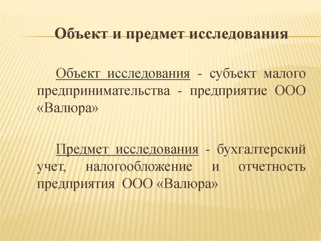 Объект и предмет исследованияОбъект исследования - субъект малого