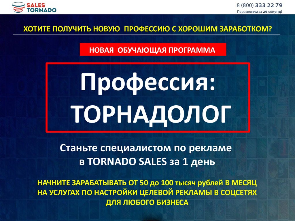 Подключитесь к Sales Tornado и вы получите:Систему обучения