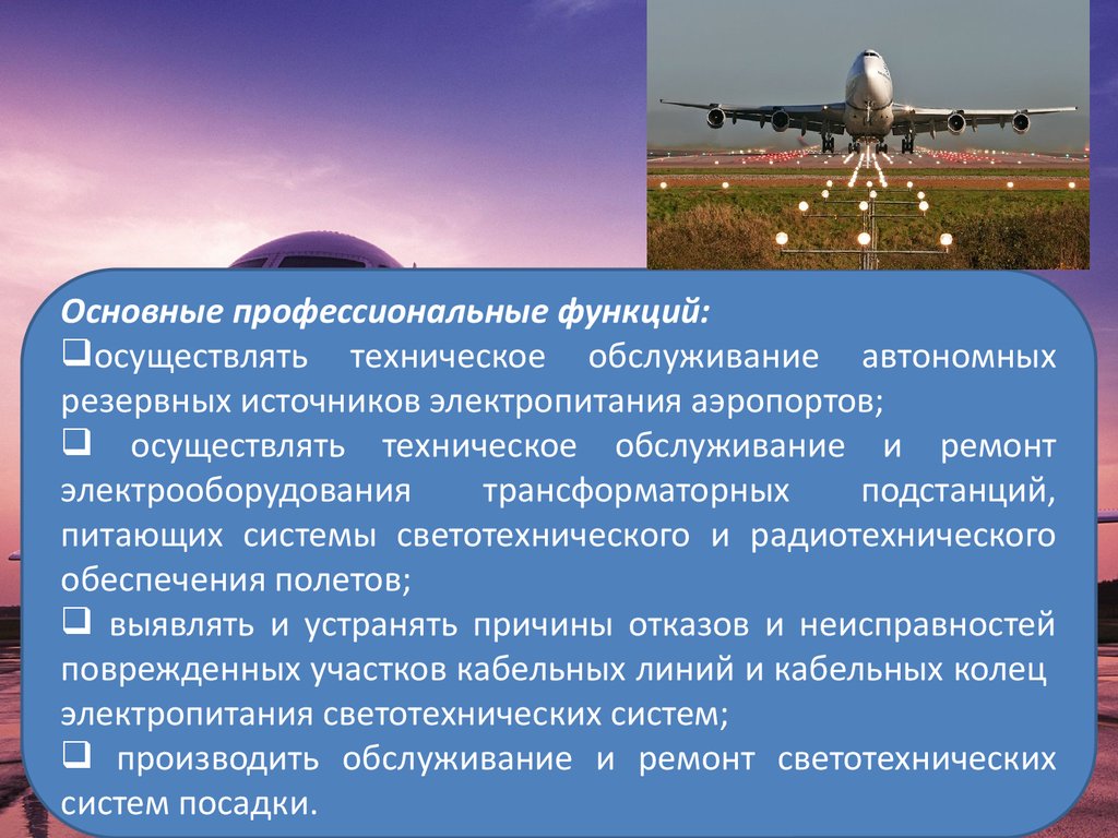 Основные профессиональные функций:осуществлять техническое обслуживание автономных