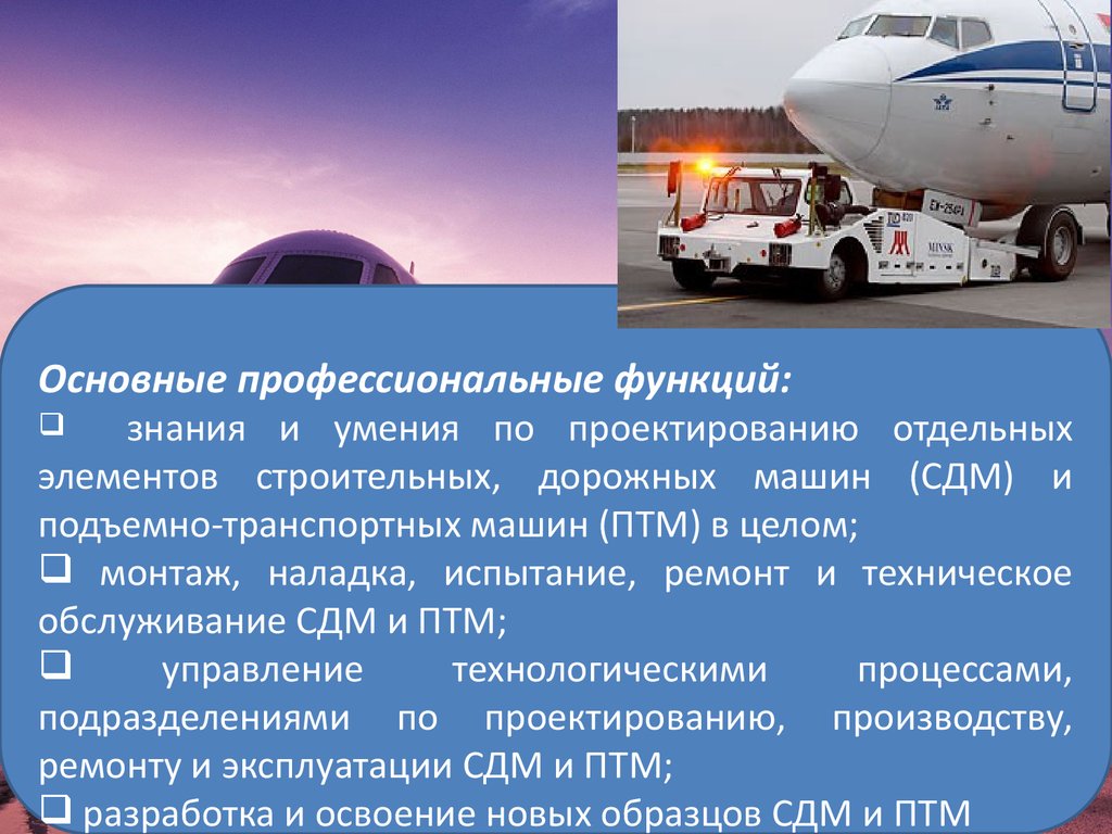 Основные профессиональные функций:организация и осуществление эксплуатации, технического
