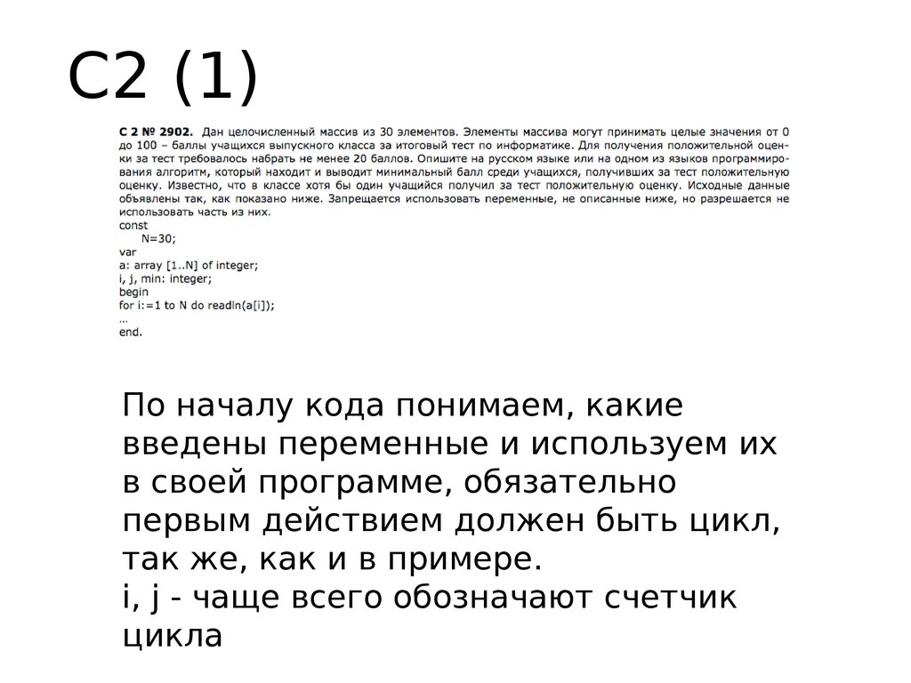 В первом цикле забиваем значения массиву.1)Приравниваем переменную min к первому элементу