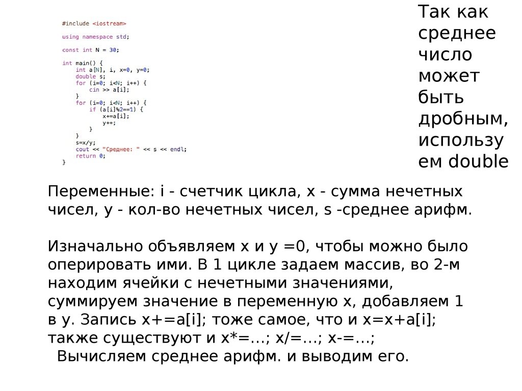 чисел, y - кол-во нечетных чисел, s -среднее арифм.