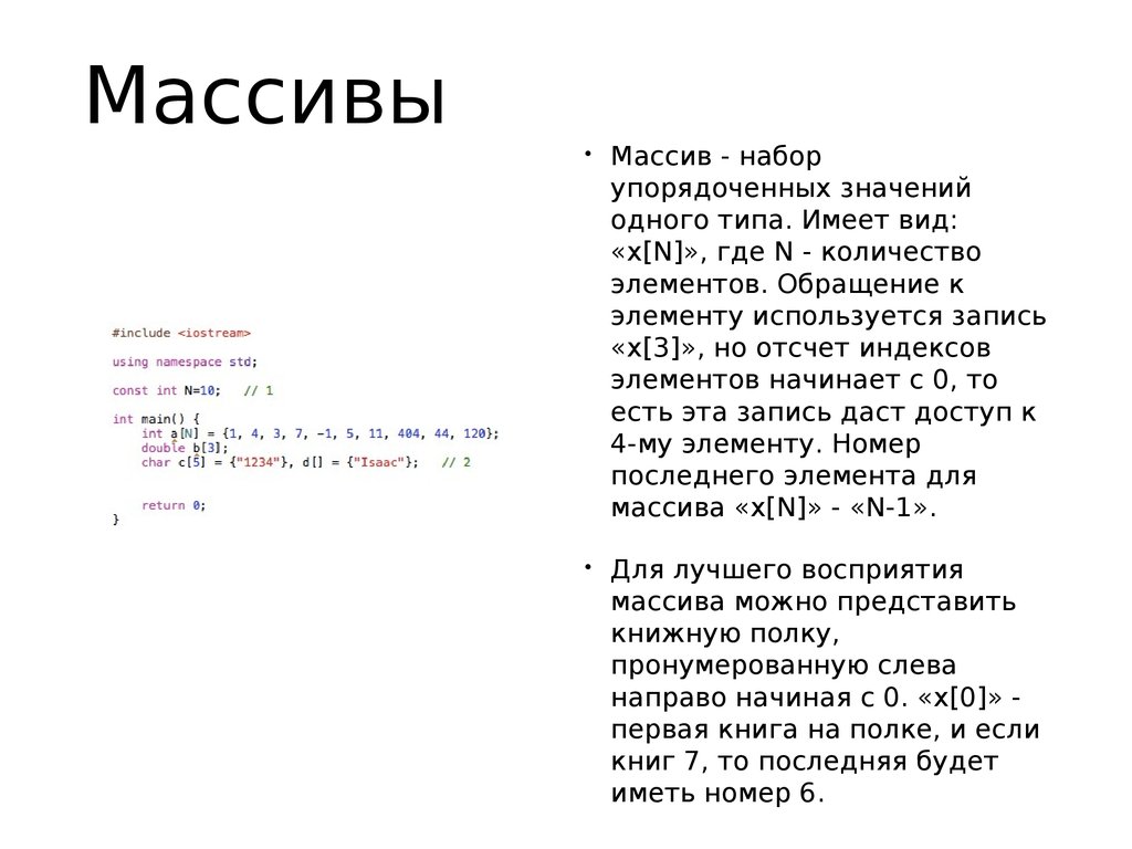 направо начиная с 0. «x[0]» первая книга на полке, и если