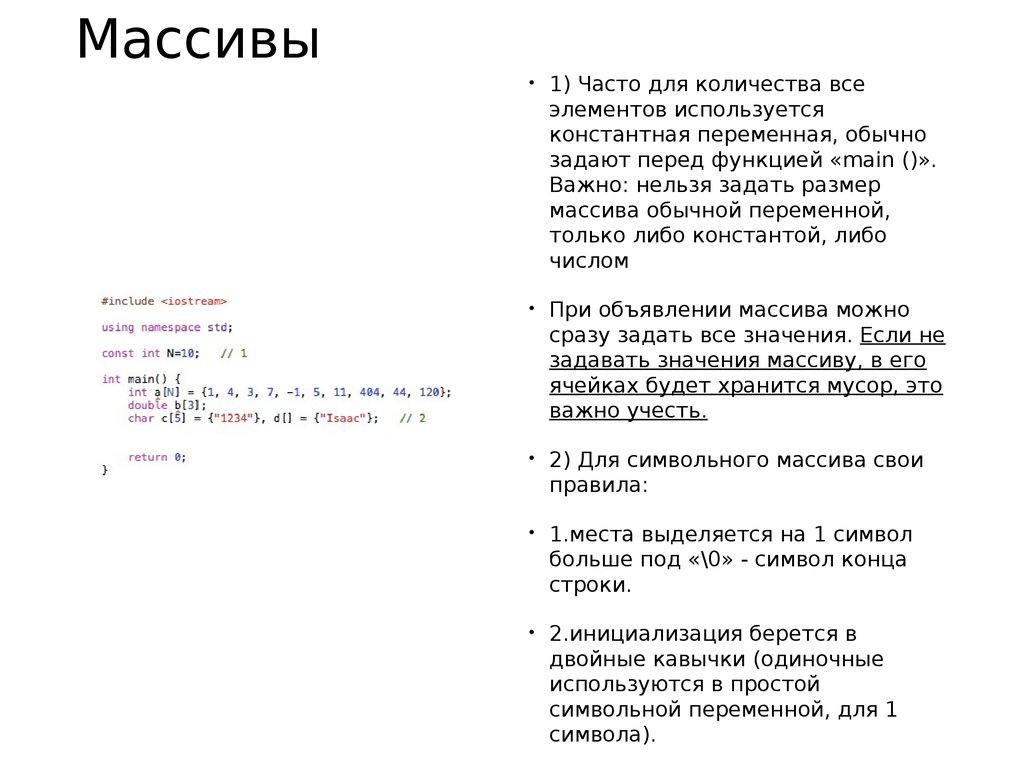 Циклы + массивыСчетчик цикла можно объявлять в круглых