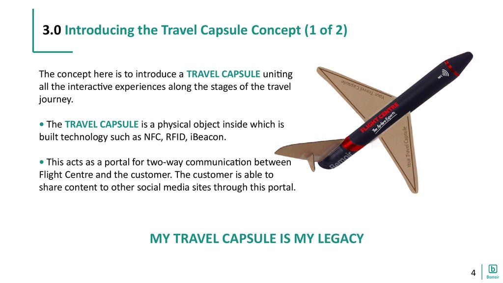 3.1 The Travel Capsule Concept Unique to Fight Centre (2 of 2)We foresee the following use for the TRAVEL CAPSULE: