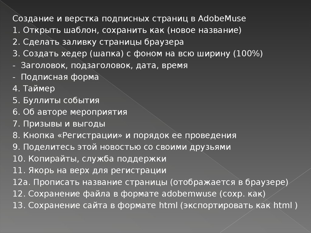 Создание и верстка подписных страниц в AdobeMuse1. Открыть шаблон, сохранить как (новое название)