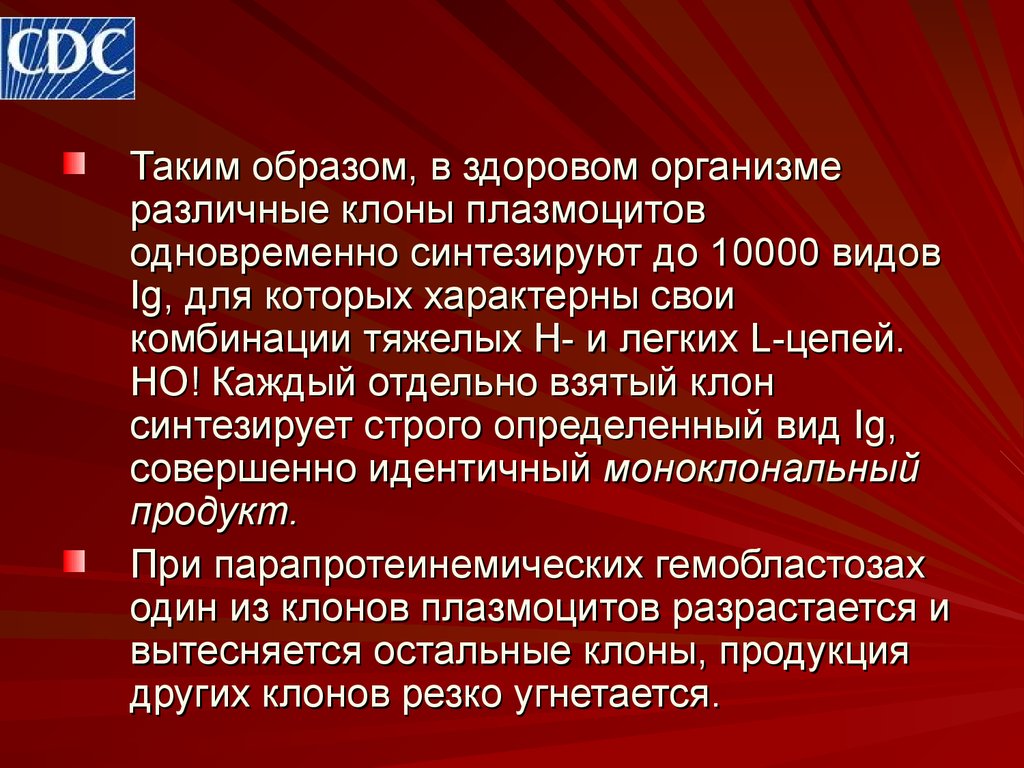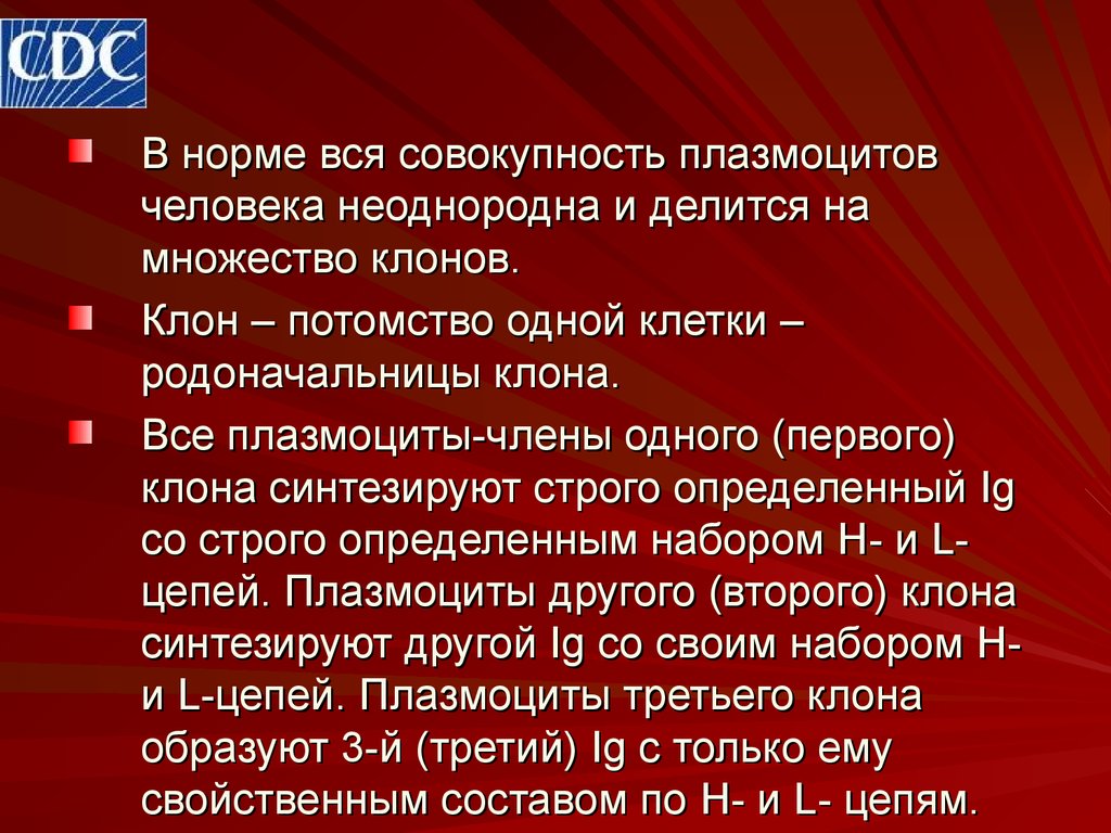 В норме вся совокупность плазмоцитовчеловека неоднородна и делится на