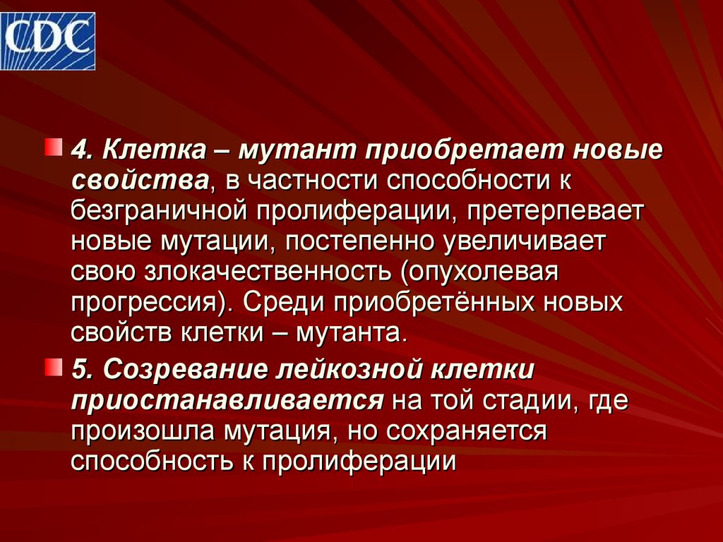 4. Клетка – мутант приобретает новыесвойства, в частности способности к