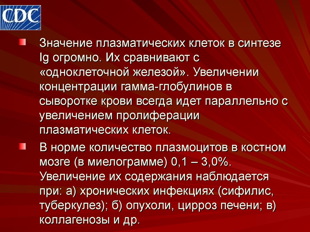 Значение плазматических клеток в синтезеIg огромно. Их сравнивают с