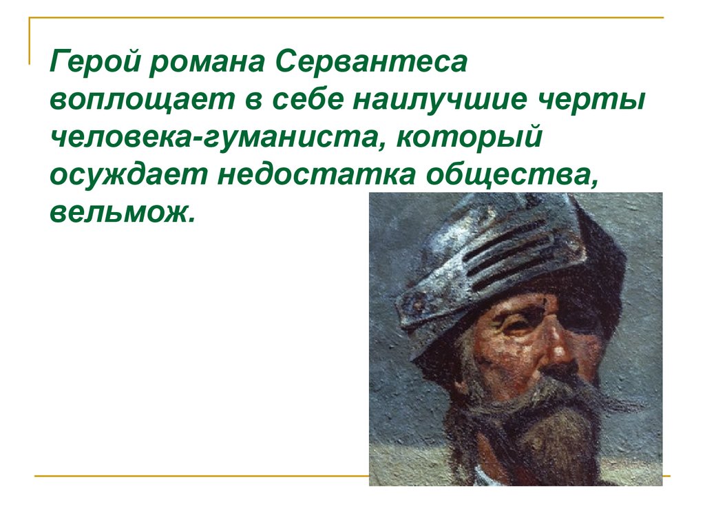 Герой романа Сервантесавоплощает в себе наилучшие черты