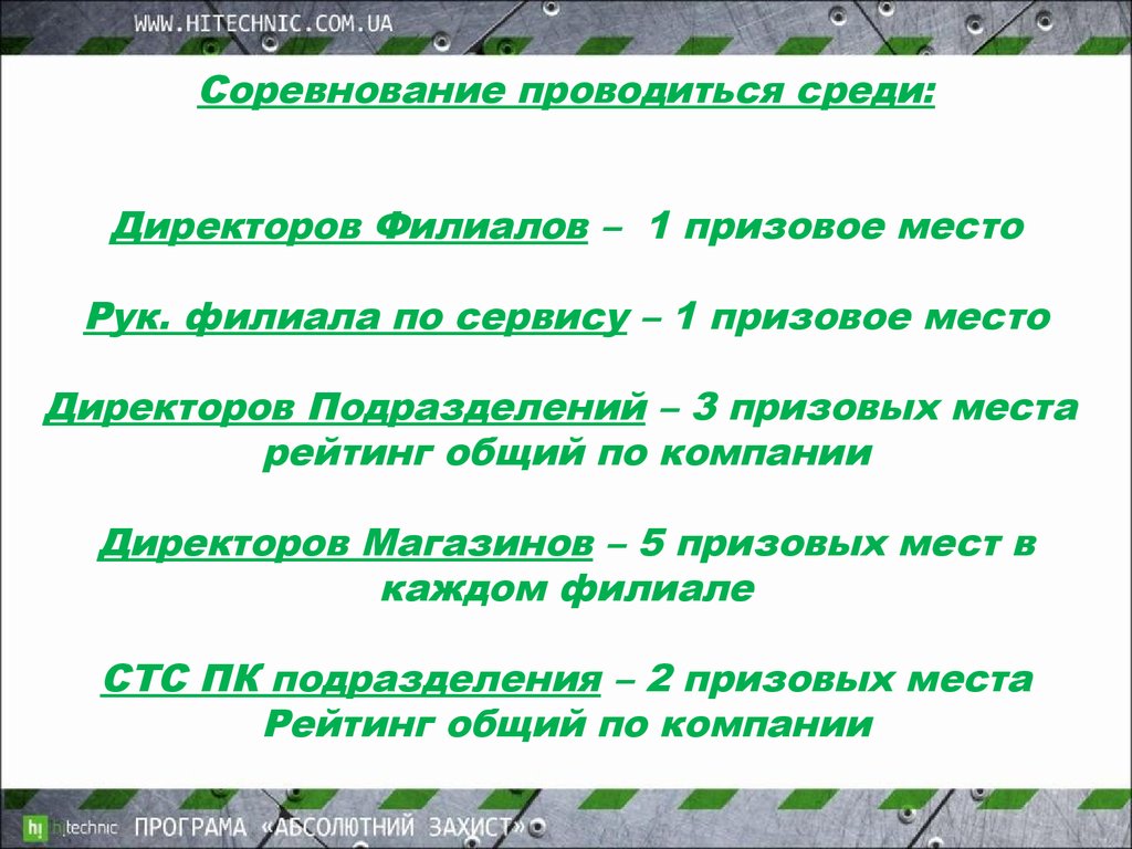 Соревнование проводиться среди:Директоров Филиалов – 1 призовое место