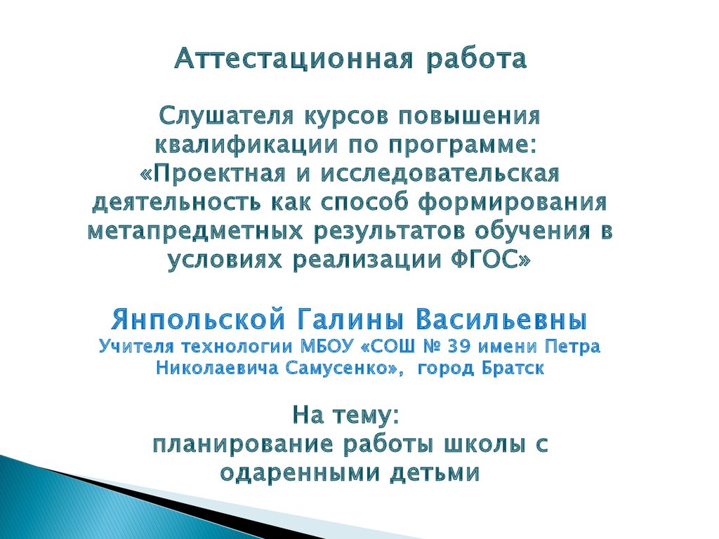 Аттестационная работа. Планирование работы школы с одаренными детьми