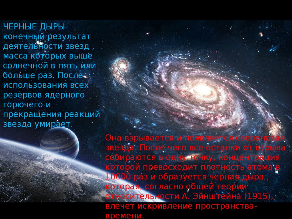 ЧЕРНЫЕ ДЫРЫконечный результатдеятельности звезд ,