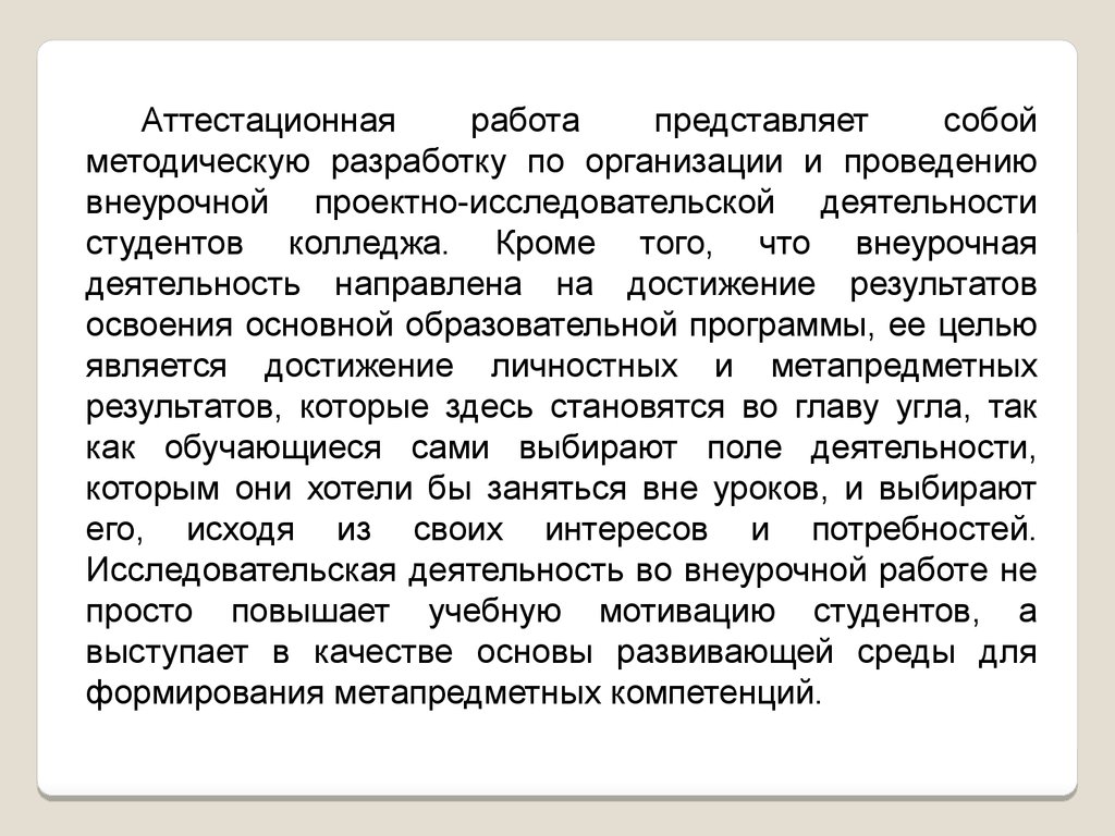 Аттестационная работа. Формирование исследовательской компетентности студентов во внеурочной деятельности