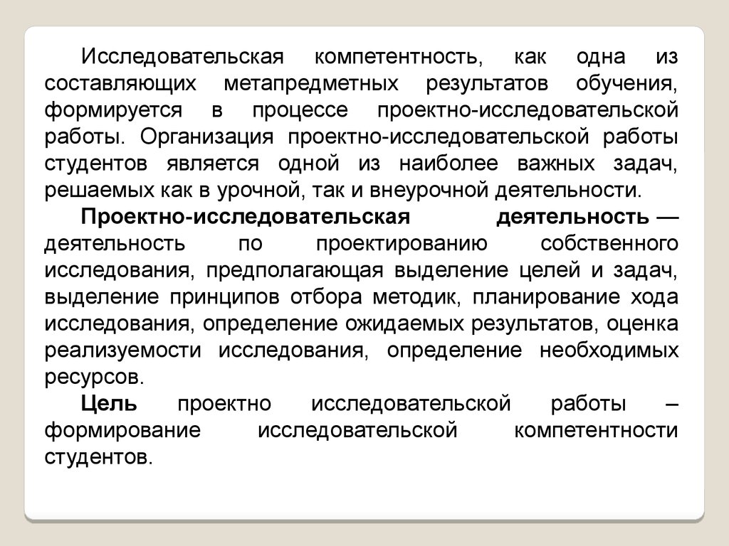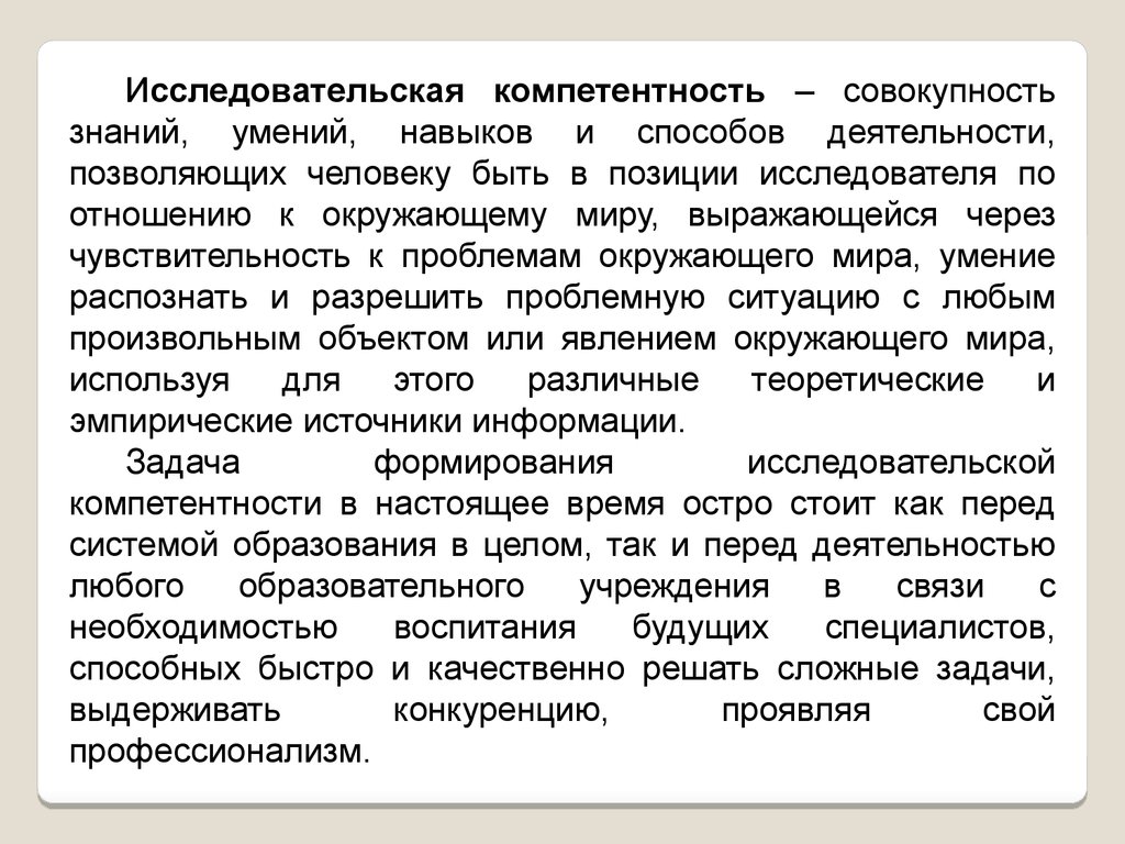 Исследовательская компетентность – совокупностьзнаний, умений, навыков и способов деятельности,