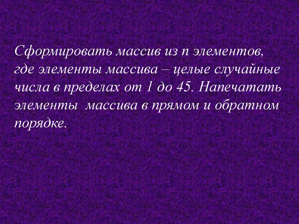 Сформировать массив из n элементов,где элементы массива – целые случайные