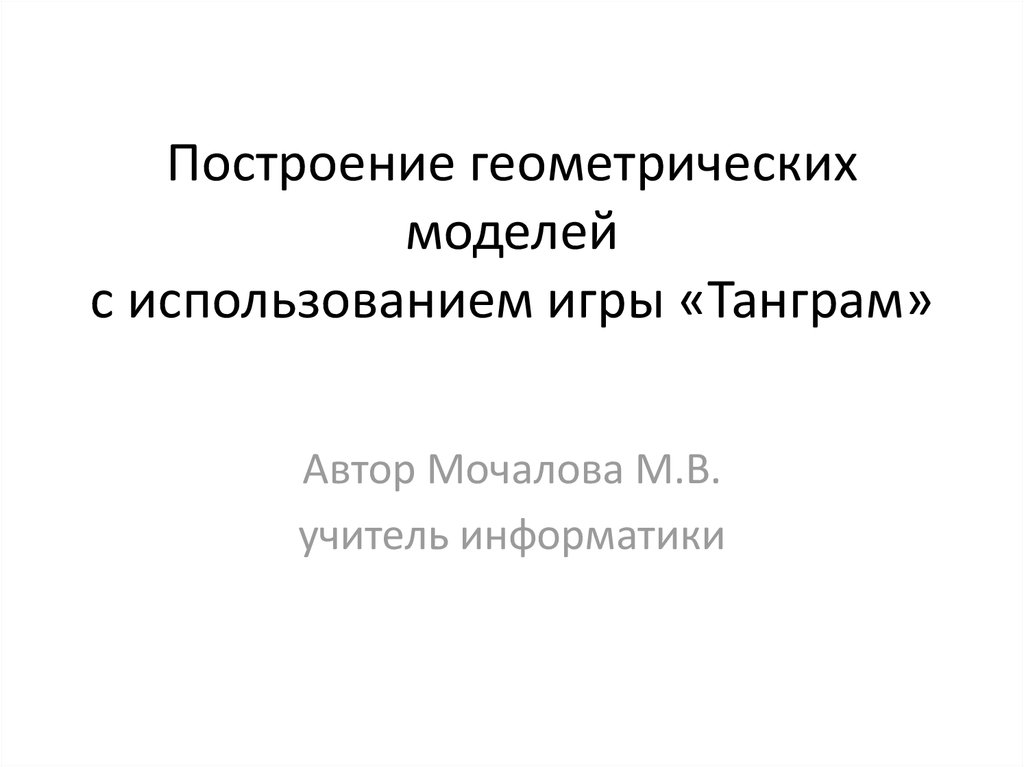 1. Построение геометрических моделей с использованием игры «Танграм»