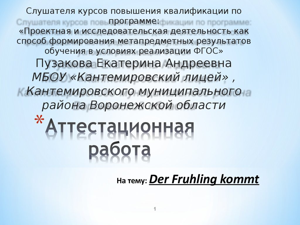 Аттестационная работа. Der Fruhling kommt