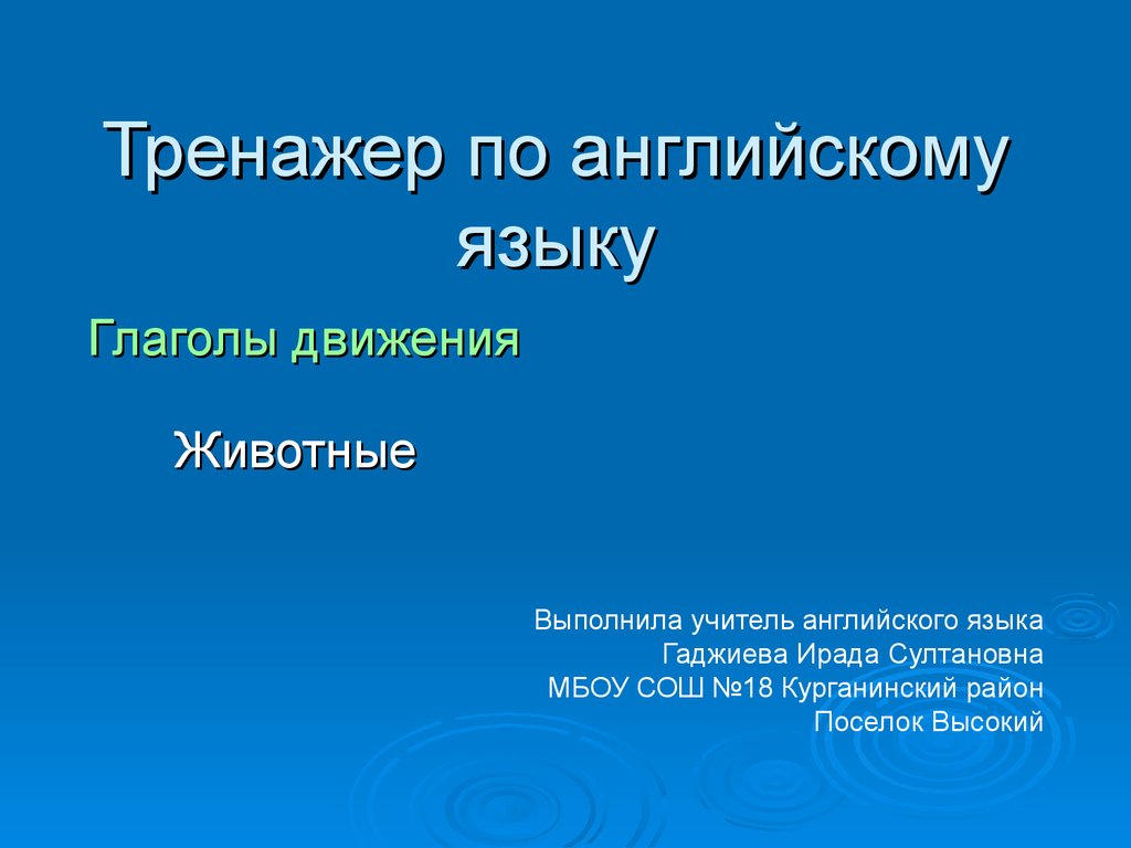 Тренажер по английскому языку. Глаголы движения. Животные