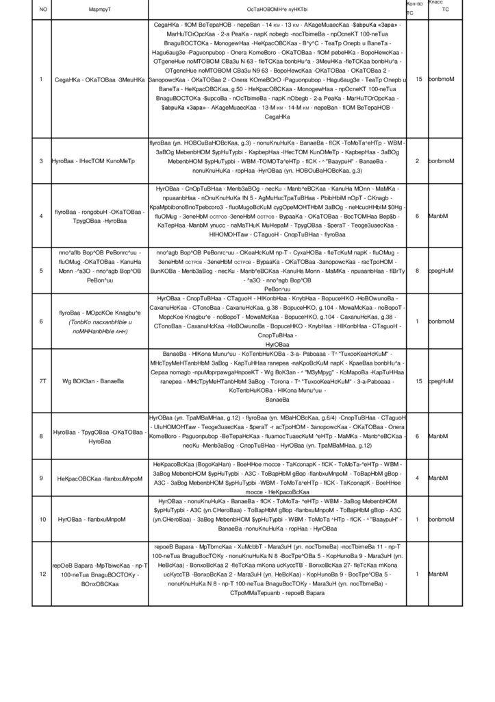 ^yroBaa (yn. HoBouBaHOBCKaa, g.3) - raPgaMaK - ABaHrapg - flanb3aBog -^upK - flBrTy - ^a30- nno^aflb Bop^OB PeBon^uu - ^ "M3yMpyg" -KoMapoBa - noKpoBCKuP napK - flanbnpecc - 1-aa