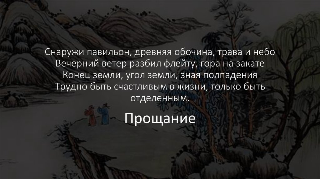 Снаружи павильон, древняя обочина, трава и небоВечерний ветер разбил флейту, гора на закате