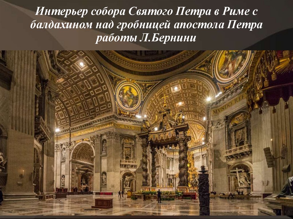Интерьер собора Святого Петра в Риме сбалдахином над гробницей апостола Петра
