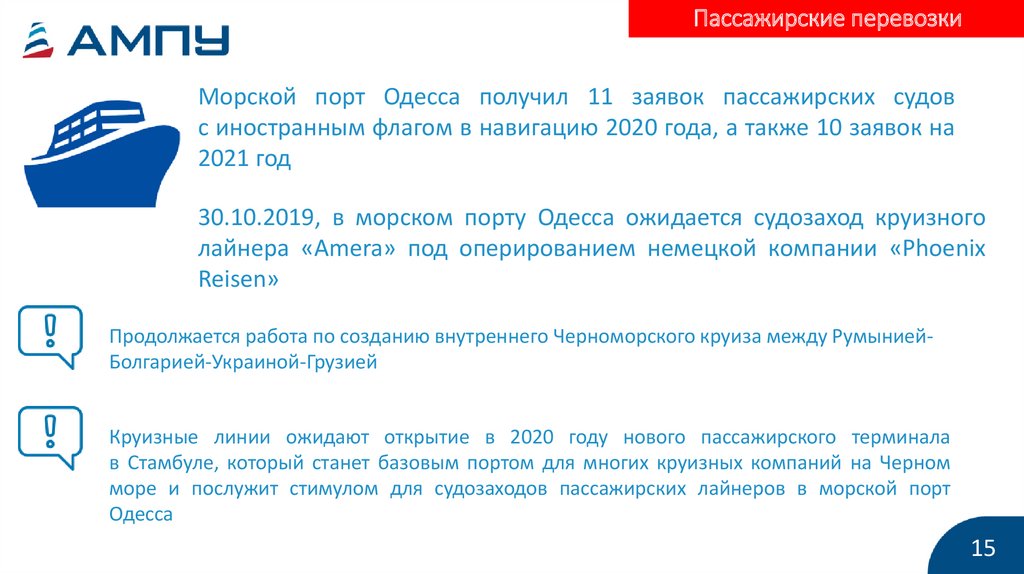 Пассажирские перевозкиМорской порт Одесса получил 11 заявок пассажирских судов