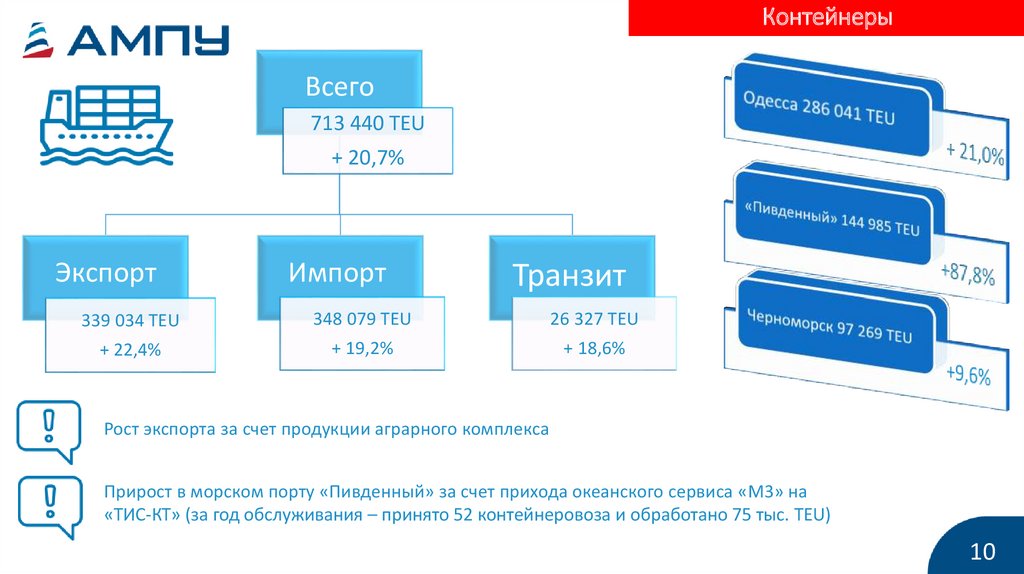 «ТИС-КТ» (за год обслуживания – принято 52 контейнеровоза и обработано 75 тыс. TEU)