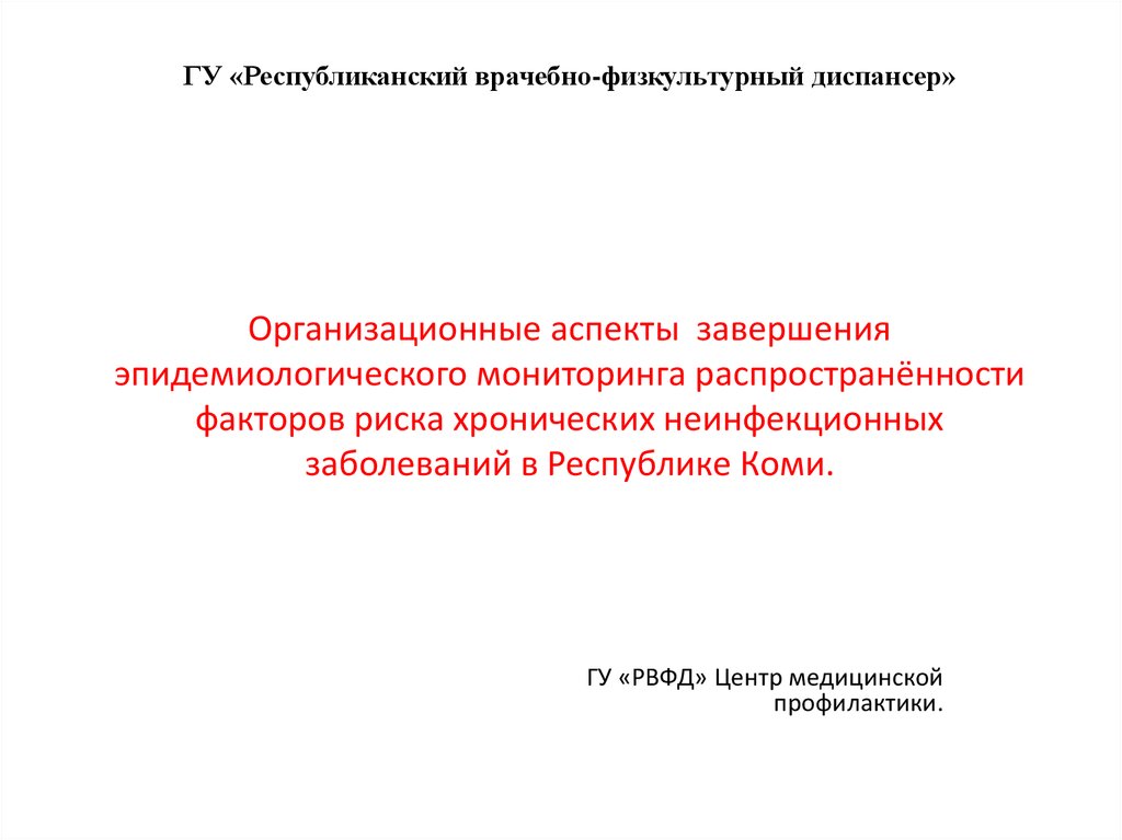 1. ГУ «Республиканский врачебно-физкультурный диспансер» Организационные аспекты завершения эпидемиологического мониторинга