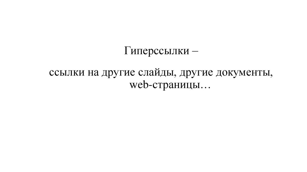 Гиперссылки –ссылки на другие слайды, другие документы,