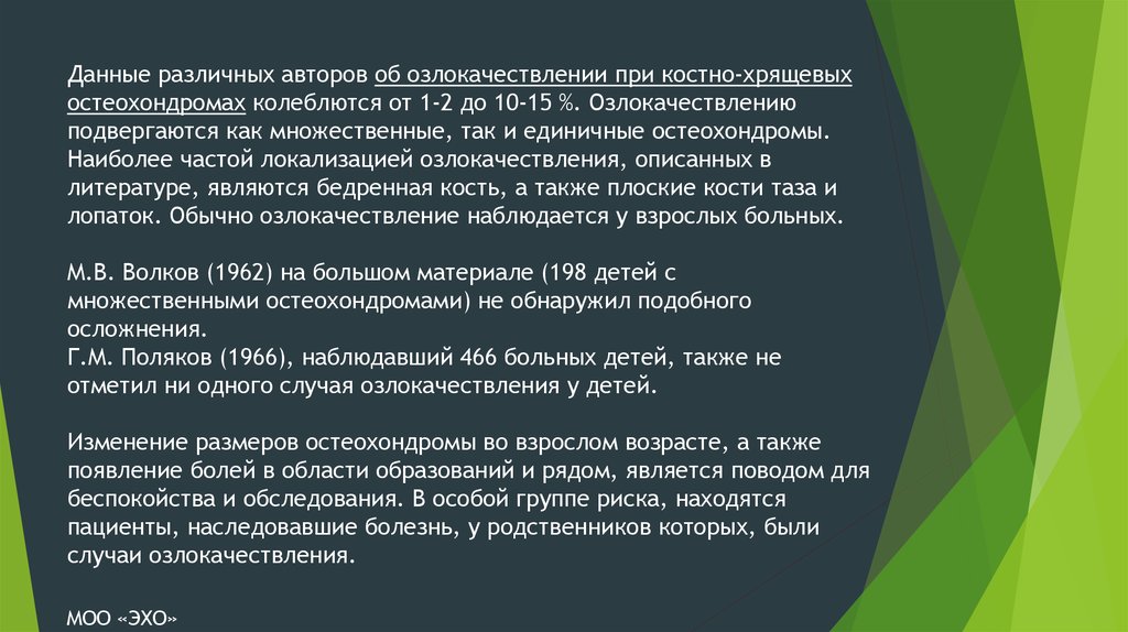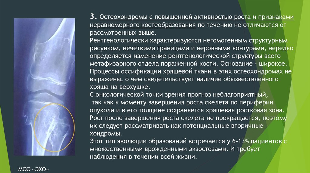 Процессы оссификации хрящевой ткани в этих остеохондромах не