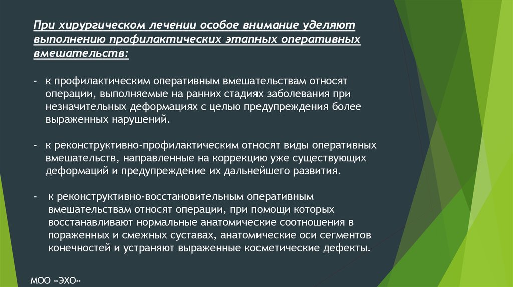 При хирургическом лечении особое внимание уделяютвыполнению профилактических этапных оперативных