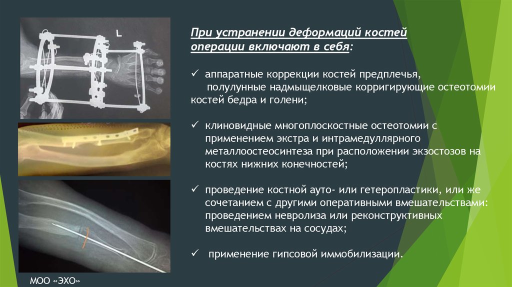 При устранении деформаций костейоперации включают в себя: