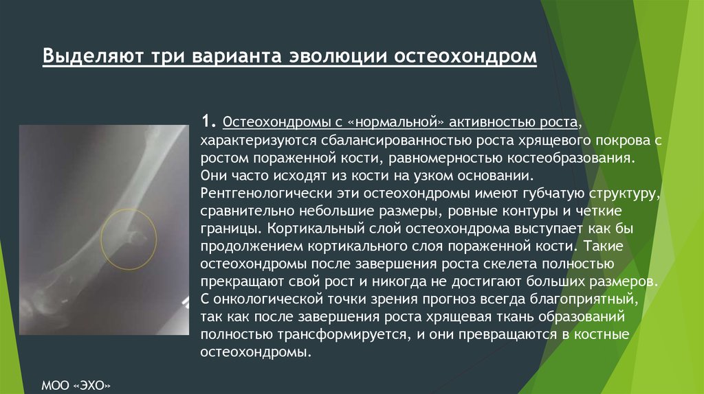 Выделяют три варианта эволюции остеохондром1. Остеохондромы с «нормальной» активностью роста,