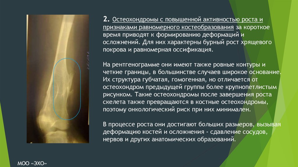 2. Остеохондромы с повышенной активностью роста ипризнаками равномерного костеобразования за короткое