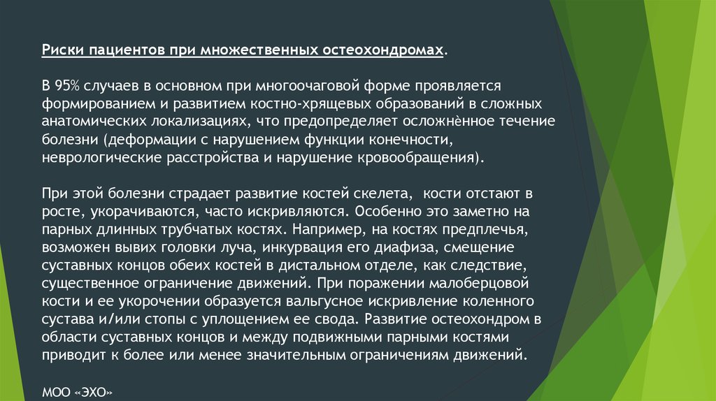 Для пациентов с множественнымиостеохондромами очень важны:
