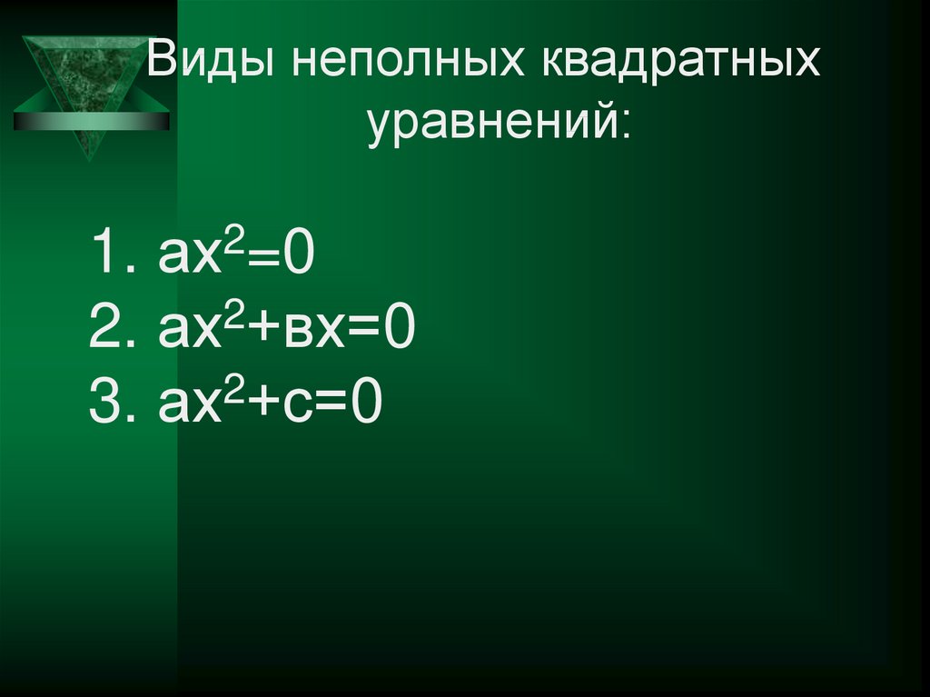 Виды неполных квадратныхуравнений: