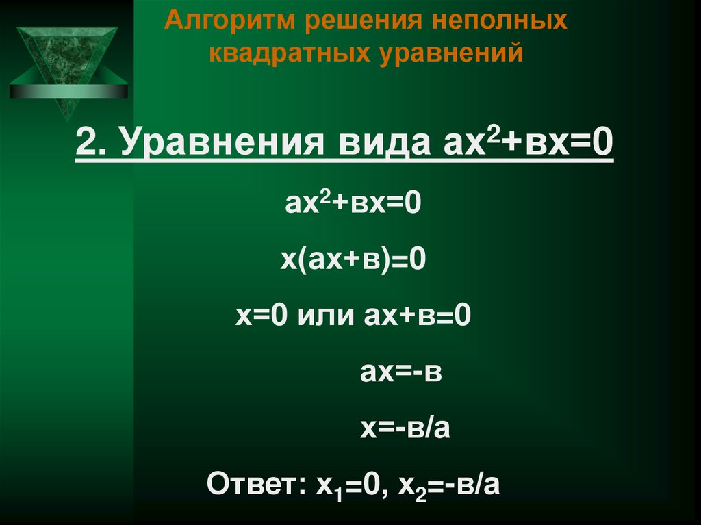 2. Уравнения вида ах2+вх=0
