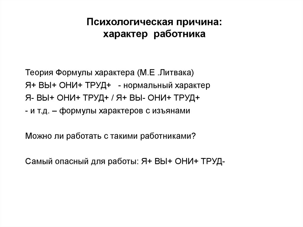 • Психологическая (характер работника не позволяет эффективновыполнять данную работу)