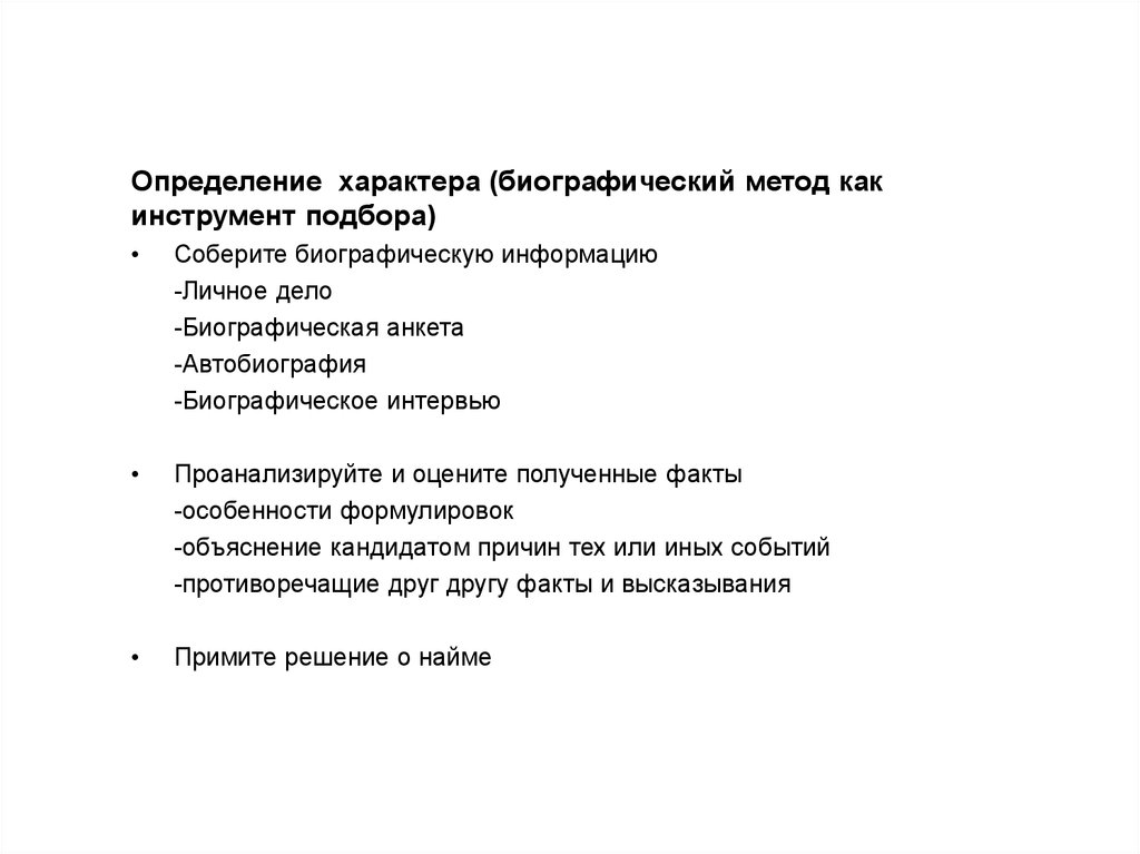 • Идеал: не брать работников с характерами с изъяном. Возможно ли?• Распознавать и учитывать характер работника при приеме на работу и