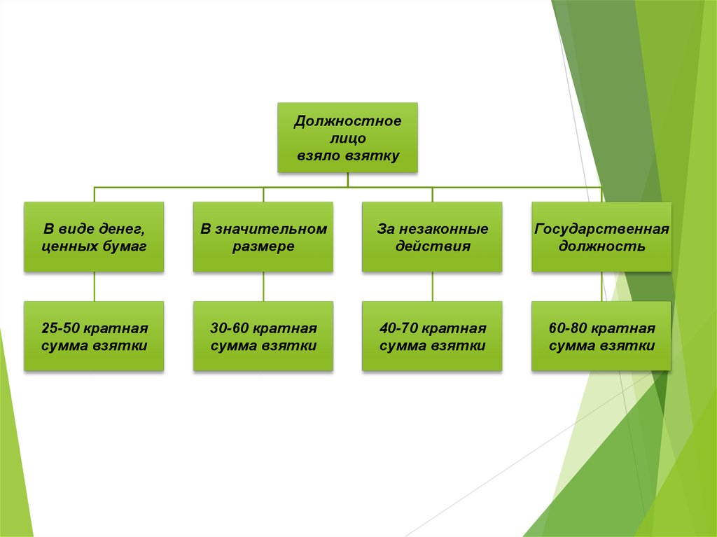 Взятка — принимаемые должностным лицомматериальные ценности (предметы, деньги,