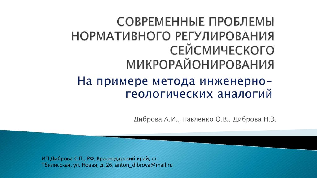 Современные проблемы нормативного регулирования сейсмического микрорайонирования