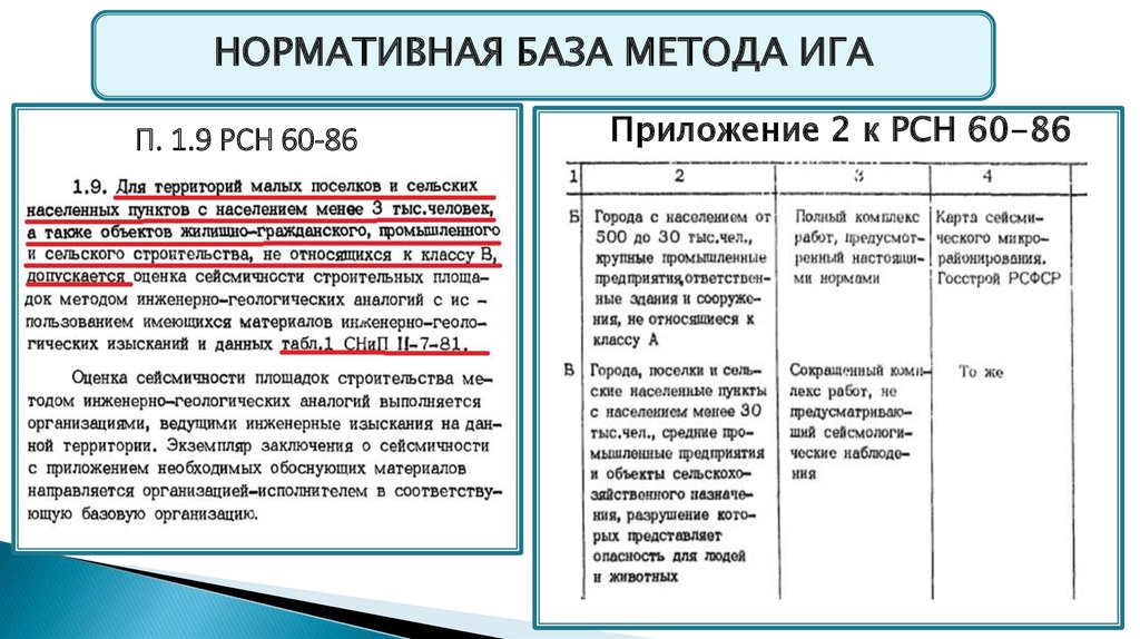 НОРМАТИВНАЯ БАЗА МЕТОДА ИГАП. 1.9 РСН 60-86