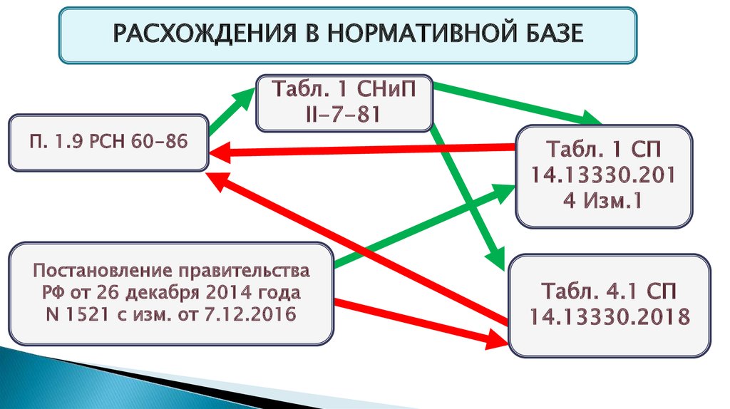 РАСХОЖДЕНИЯ В НОРМАТИВНОЙ БАЗЕТабл. 1 СНиП