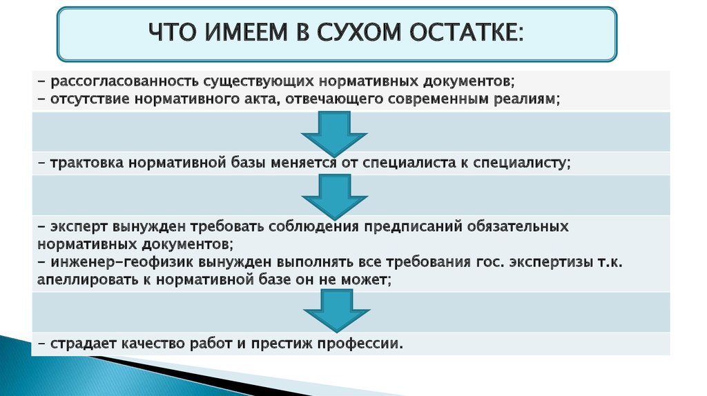 ЧТО ИМЕЕМ В СУХОМ ОСТАТКЕ:- рассогласованность существующих нормативных документов;